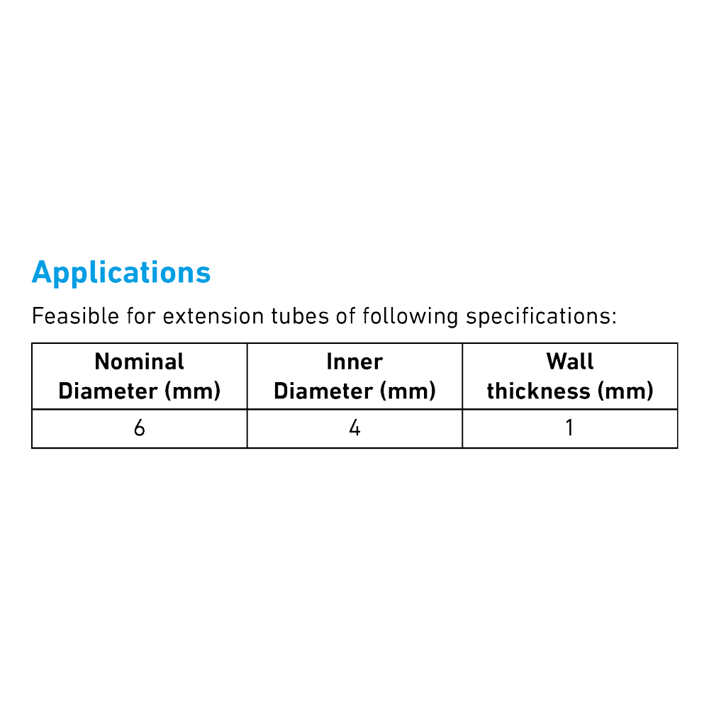 • Special Connector for 6 mm tube - Special one piece connector designed for 6 mm tube.