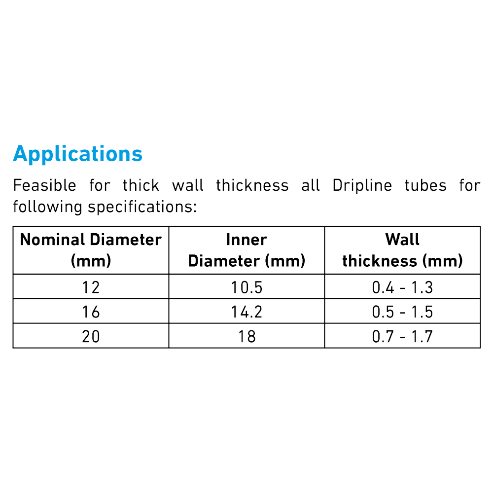 • Feasible for thick wall thickness all Dripline tubes