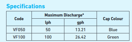 Complete shut off possible when water is not needed. Maximum flow at 1 kg/cm² pressure on full opening is 50 lph & 100 lph.